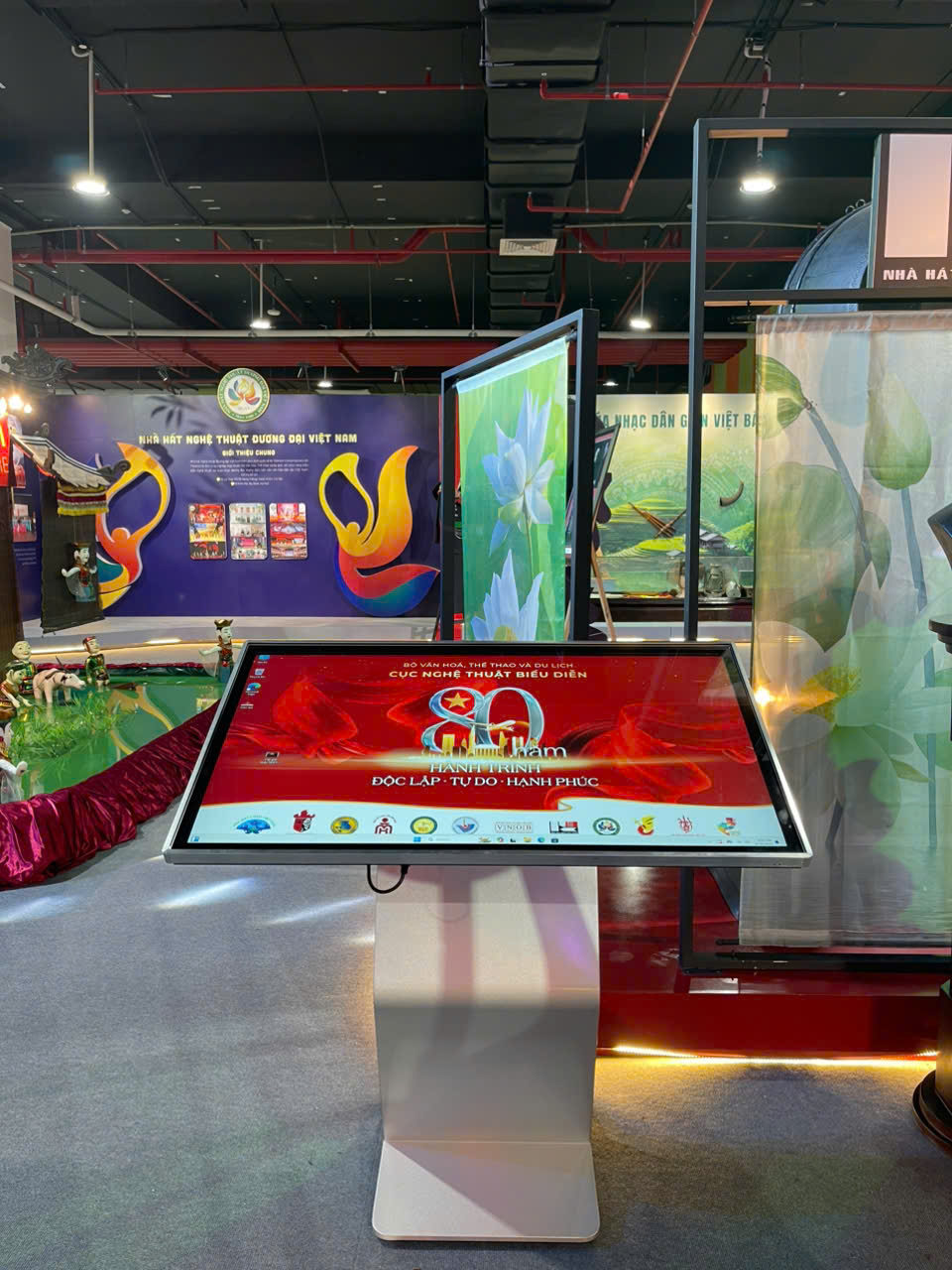 Màn hình cảm ứng chân quỳ giúp gian hàng hiện đại – chuyên nghiệp – tạo trải nghiệm khác biệt tại Triển lãm Mùa Thu 2026.