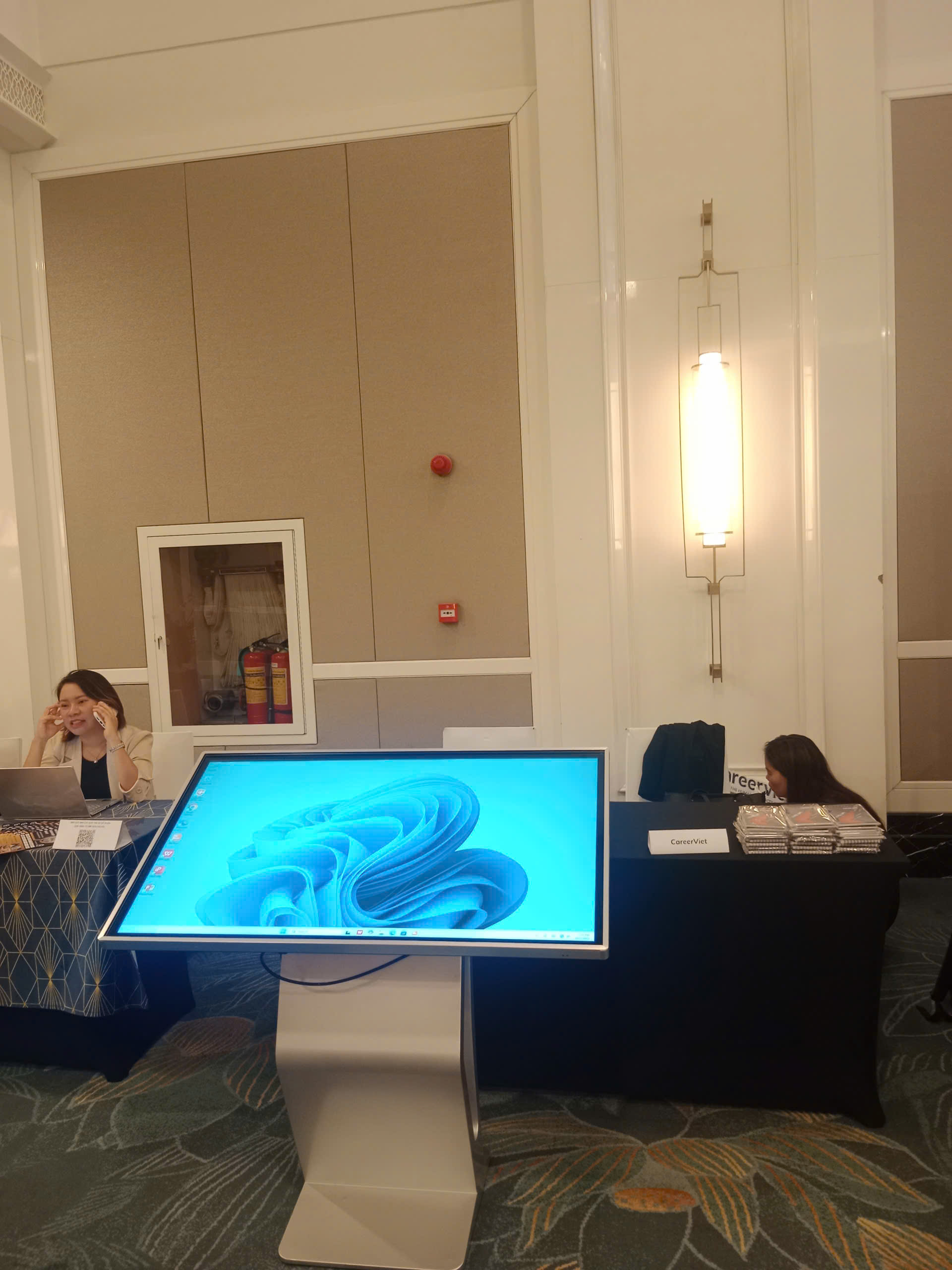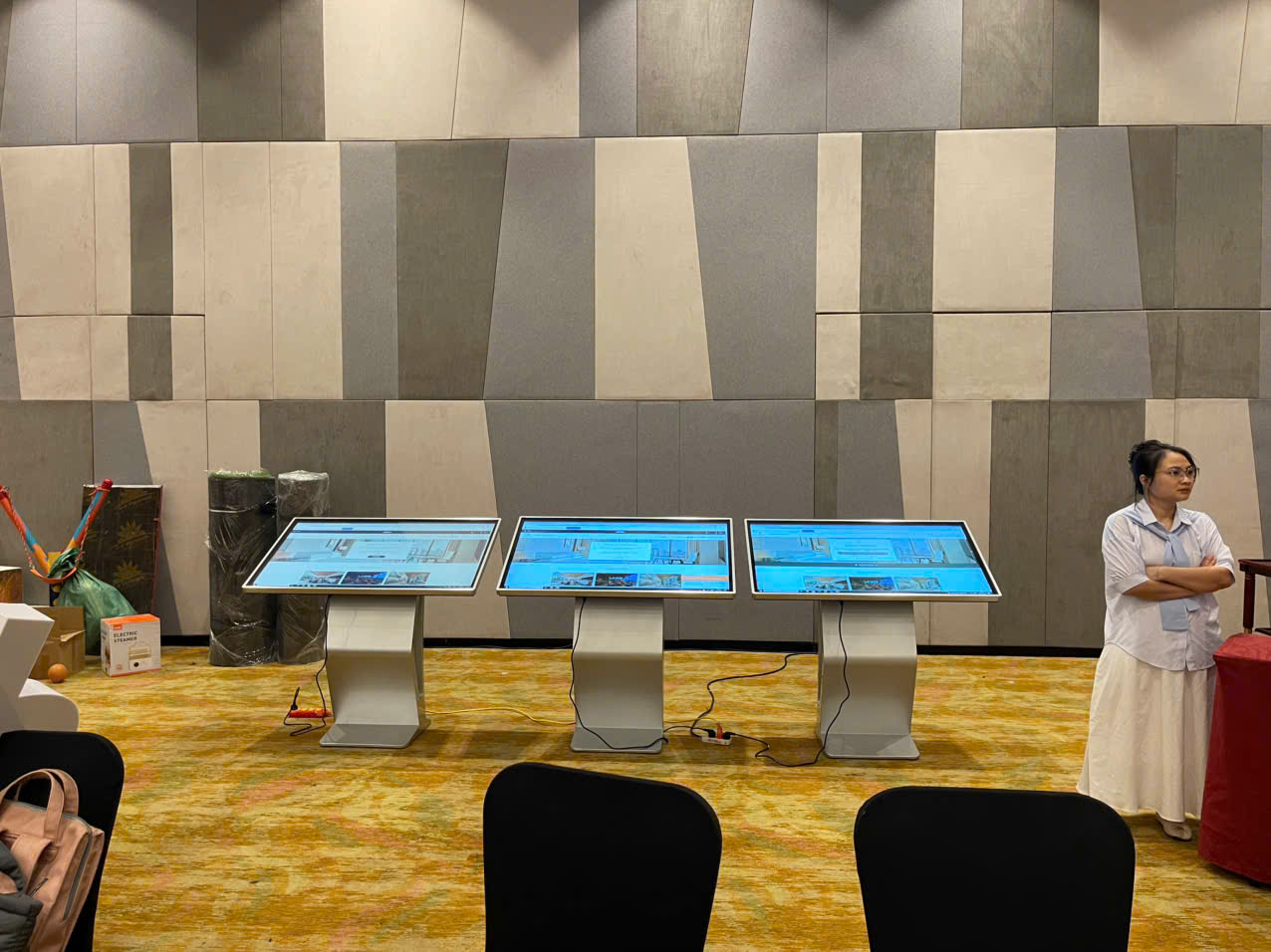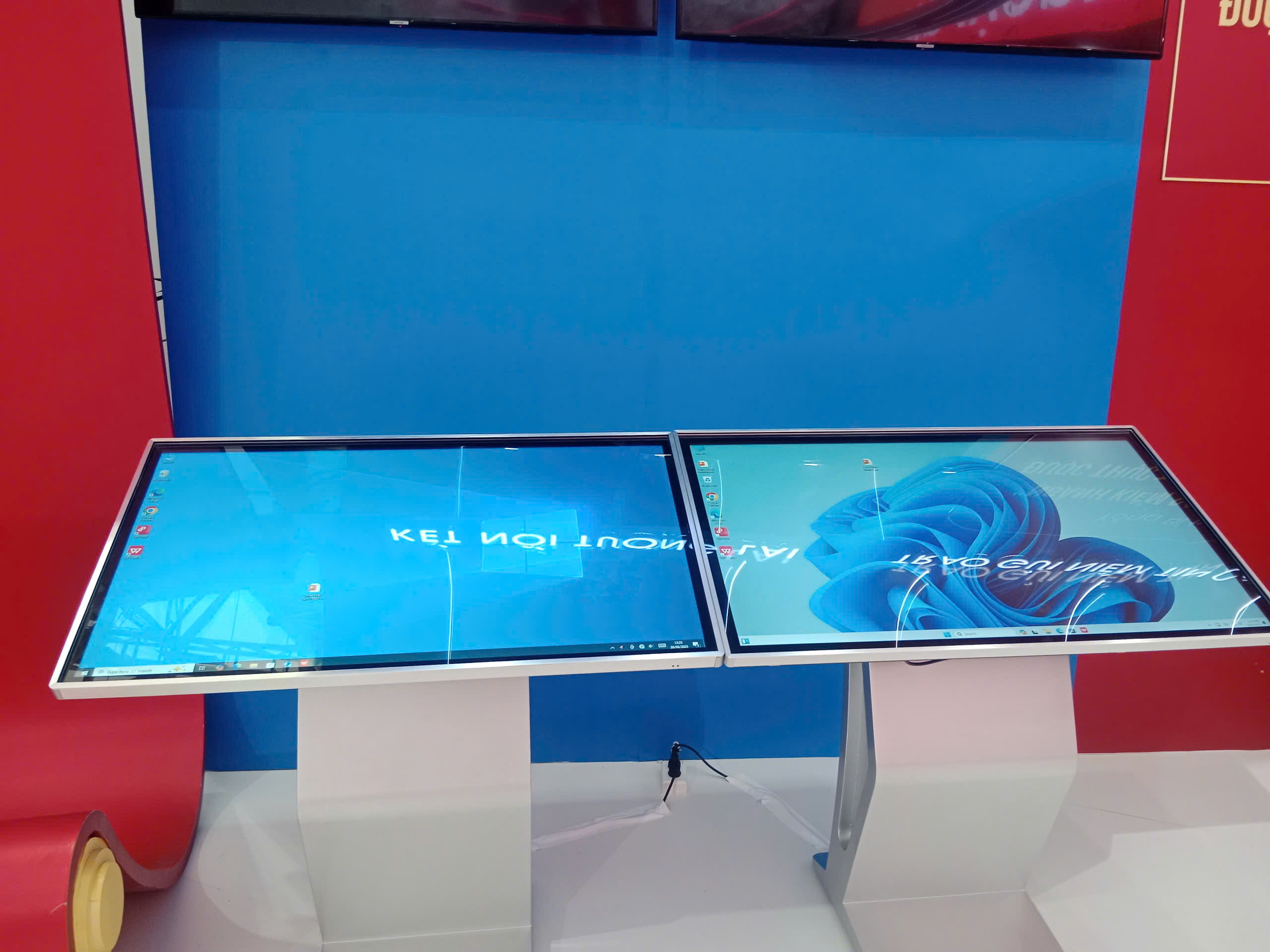 Dù là hội chợ, triển lãm hay trưng bày sản phẩm, màn hình chân quỳ luôn giúp gian hàng của bạn nổi bật và chuyên nghiệp hơn.
